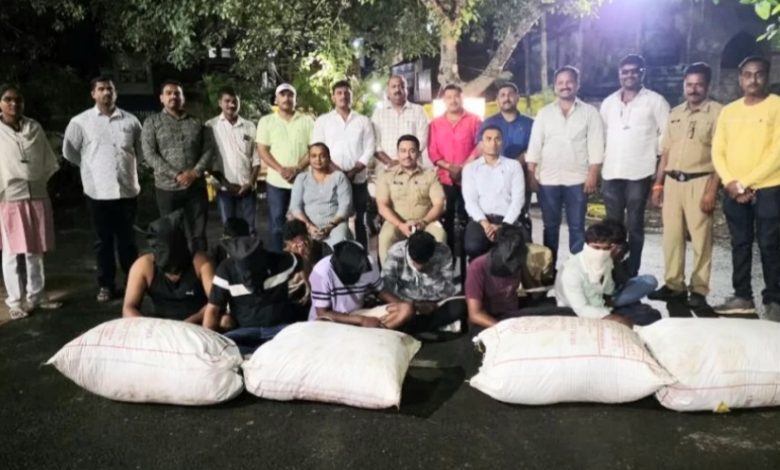 देशस्तंभ ऑनलाईन न्यूज नेटवर्क: अहिल्यानगर – ओरिसा राज्यातून नगरमध्ये विक्रीसाठी आणलेला गांजाचा मोठा साठा कोतवाली पोलिसांनी केडगाव बायपास परिसरात सिनेस्टाईल कारवाई करत पकडला आहे. हा गांजा विक्री साठी आलेले तिघे आणि तो खरेदीसाठी २ कारमधून आलेले ७ अशा १० जणांना अटक करण्यात आली असून त्यांच्या कडून २० लाखांच्या गांजासह, ३ वाहने, ११ मोबाईल असा ८८ लाखांचा मुद्देमाल जप्त केला आहे. पोलिसांनी १९ जून रोजी रात्री १०.४० च्या सुमारास सुरु केलेली ही कारवाई २० जून रोजी पहाटे ४ वाजेपर्यंत चालली.