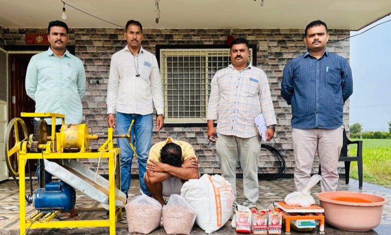 पथकाने घटनाठिकाणावरून 1,46,540/- रू किंमतीचा मुद्देमाल त्यात 15 किलो सुगंधीत मावा, 10 किलो सुपारी, 1 इलेक्ट्रीक मोटार व मशीन, एक वजनकाटा, 2 किलो चुना, सुगंधीत तंबाखु असा मुद्देमाल जप्त केला.ताब्यातील आरोपीस जप्त करण्यात आलेल्या मुद्देमालासह राहुरी पोलीस स्टेशन येथे हजर करण्यात येऊन, आरोपीविरूध्द राहुरी पोलीस स्टेशन गुरनं 794/2025 बीएनएस 2023 चे कलम 123, 223, 274, 275, 3(5) सह अन्न सुरक्षा मानके अधिनियमान्वये गुन्हा दाखल करण्यात आला असुन गुन्हयाचा पुढील तपास राहुरी पोलीस स्टेशन हे करीत आहेत.
