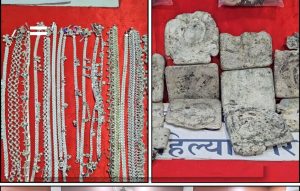 ताब्यातील आरोपीकडे श्रीरामपूर शहर पोलीस स्टेशन गुरनं 681/2025 च्या अनुषंगाने विचारपूस केली असता आरोपी गोपीसिंग प्रल्हादसिंग टाक याने त्याचे वरील साथीदारासह दि.17/07/2025 रोजीचे रात्री त्यांचेकडील होंडा कारमधुन जाऊन श्रीरामपूर, जि.अहिल्यानगर येथे सोनाराचे दुकानामध्ये चोरी केल्याची माहिती सांगीतली.पथकाने पंचासमक्ष ताब्यातील आरोपीकडून 14,07,000/- रूपये किंमत त्यात होंडा कंपनीची सीटीझेड एक्स कार क्रमांक एमएच-03-एझेड-5458, 5 मोबाईल, 11 किलो 230 ग्रॅम चांदीचे दागीने व लगड, 4 ग्रॅम वजनाचे सोन्याचे दागीने असा मुद्देमाल जप्त केला आहे.