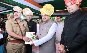 यावेळी जिल्हाधिकारी डॉ. पंकज आशिया, जिल्हा पोलीस अधीक्षक सोमनाथ घार्गे, जिल्हा परिषदेचे मुख्य कार्यकारी अधिकारी आनंद भंडारी, महानगरपालिका आयुक्त डॉ. यशवंत डांगे, उपवनसंरक्षक धर्मवीर साळविठ्ठल आदी तसेच विविध विभागांचे वरिष्ठ अधिकारी, स्वातंत्र्यसैनिक, माजी सैनिक, लोकप्रतिनिधी, अधिकारी, कर्मचारी, नागरिक व शालेय विद्यार्थी उपस्थित होते.