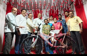 यावेळी मंडळाच्या वतीने आयोजित लकी ड्रॉ मध्ये परिसरातील रहिवासी आरती राम नक्का या सायकल जिंकणाऱ्या भाग्यवान विजेत्या ठरल्या. यावेळी उपस्थित मान्यवरांच्या उपस्थितीत त्यांना सायकलचे वितरण करण्यात आले.
