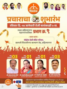 या पार्श्वभूमीवर प्रभाग 9 मधील शिवसेनेचे उमेदवार अनु. जाती, अनु. क्रमांक 3 संजय छगनराव शेंडगे, ओबीसी महिला अनु. क्रमांक 1 रुपाली संदीपभाऊ दातरंगे, सर्व साधारण महिला अनु. क्रमांक 1 वैशाली शाम नळकांडे,सर्वसाधारण पुरुष अनु. क्रमांक 3 सचिन चंद्रशेखर शिंदे या उमेदवारांच्या प्रचारात रिपब्लिकन सेनेच्या महिला पदाधिकारी मैदानात उतरल्या असून त्यांनी निलक्रांती चौक, गौतमनगर, जाधवमळा, बागडे मळा, सूडके मळा, लेंडकर मळा, परिसरातील मतदारांशी संवाद साधत