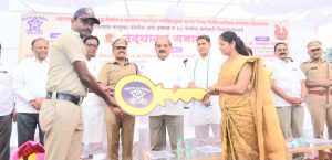 याप्रसंगी प्रातिनिधीक स्वरुपात पाच पोलीस अधिकारी – कर्मचाऱ्यांना गृह संकुलाच्या चाव्या हस्तांतरित करण्यात आल्या.